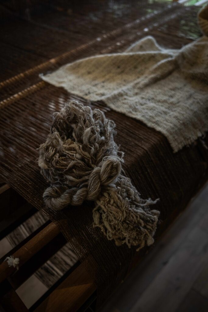 LAINES DE RETAL produit des tissus haut de gamme 100% laine, tissés à la main et réalisés à partir de la laine produite sur place.