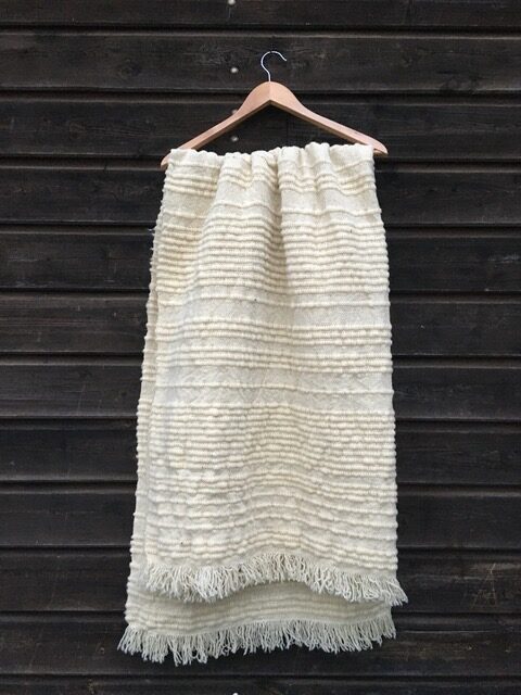 Nos plaids sont réalisés en laine écrue ou Shetland ou les deux. Ils sont tissés à plat ou en cardé toujours pour tenir chaud ! Parfois nous leur faisons quelques petites fantaisies.